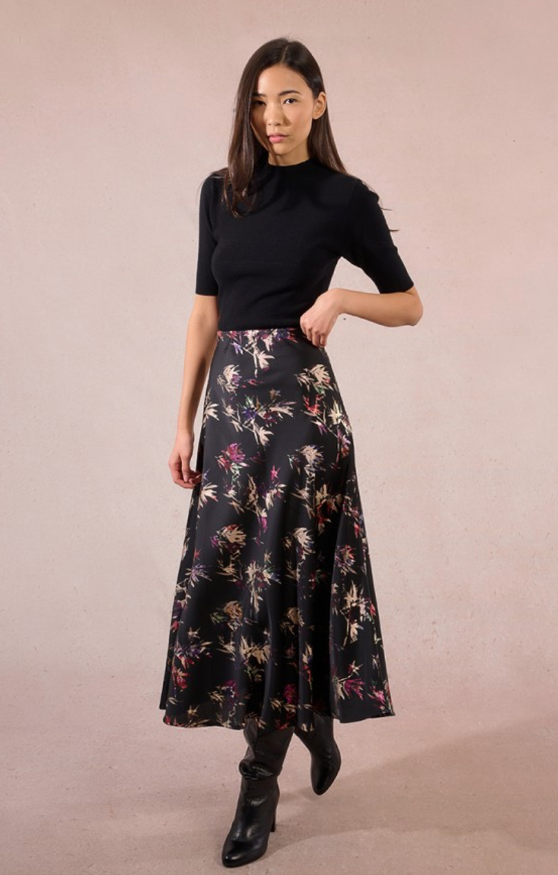 MATTE MIDI BIAS W/METALIC LEAF PRINT